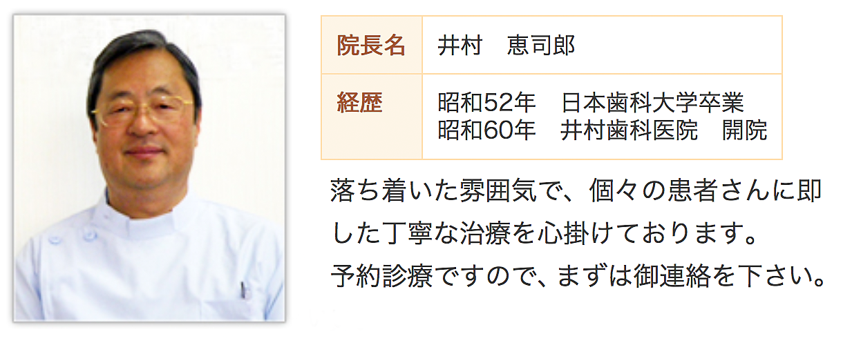 練馬区の歯科、練馬駅西口から徒歩7分の井村歯科医院です。